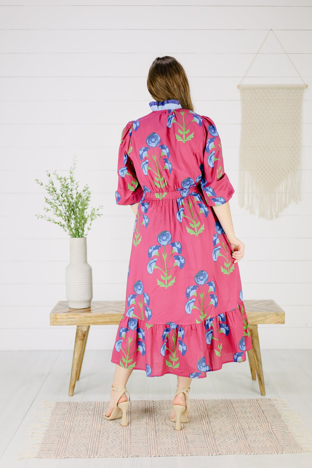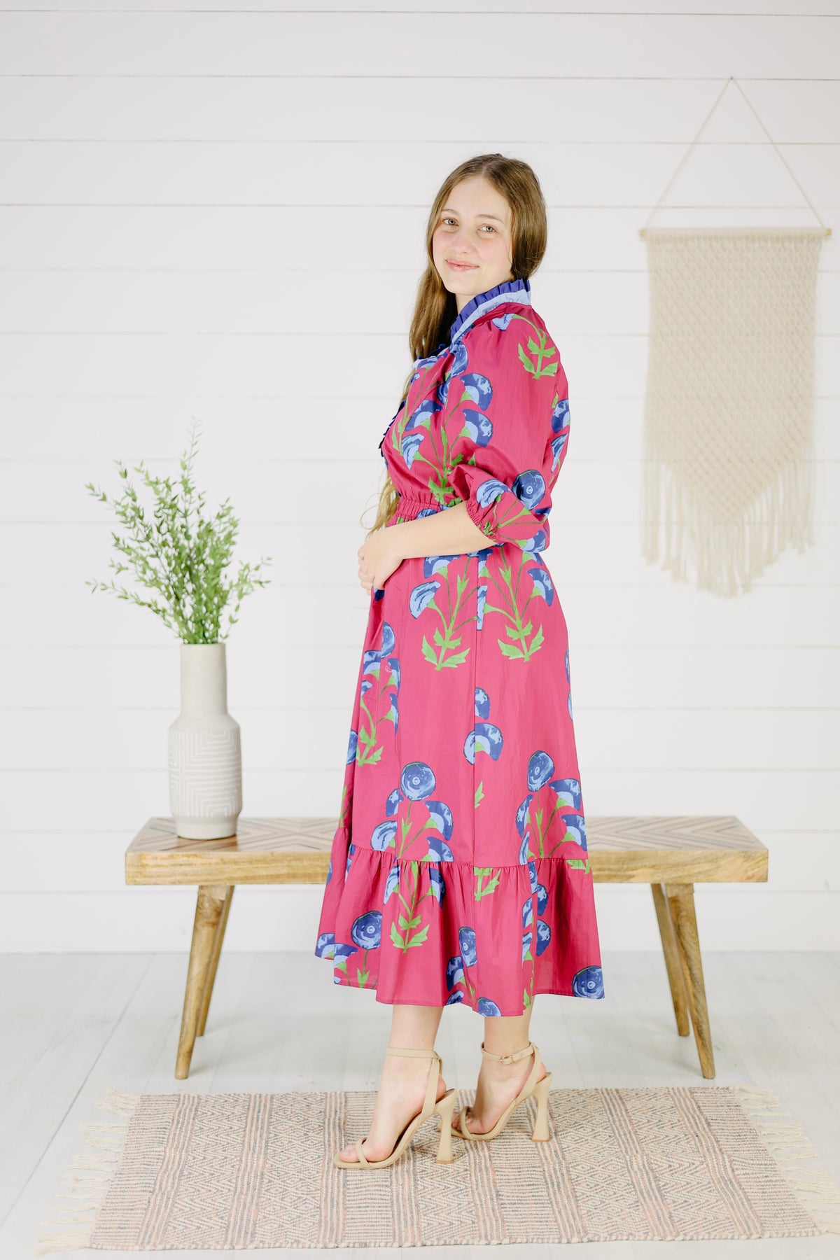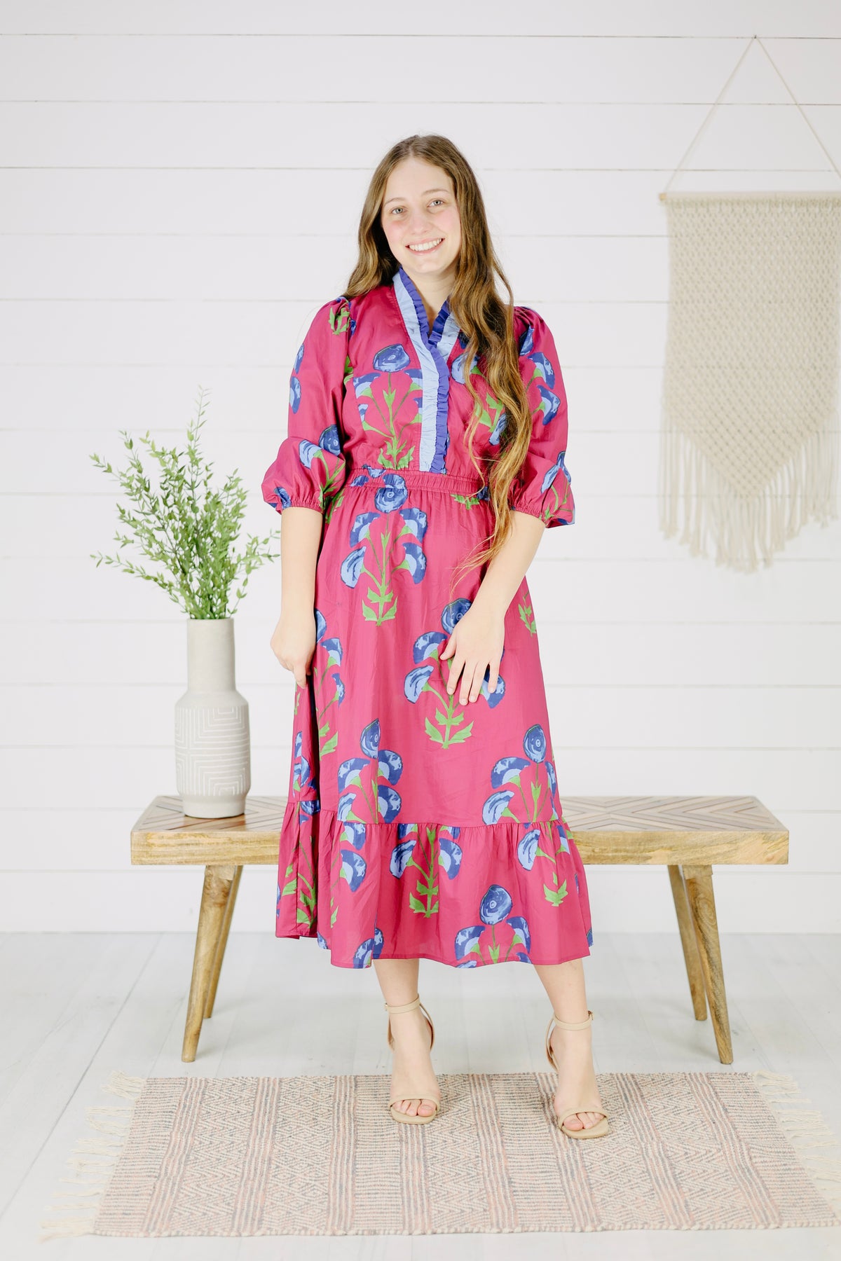 Hera Floral Midi Dress- Berry