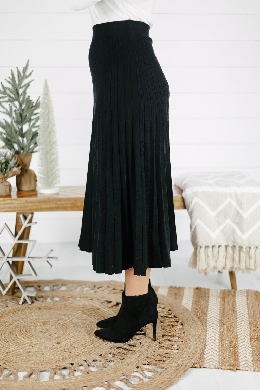 Adelia Pleated Sweater Skirt- Black
