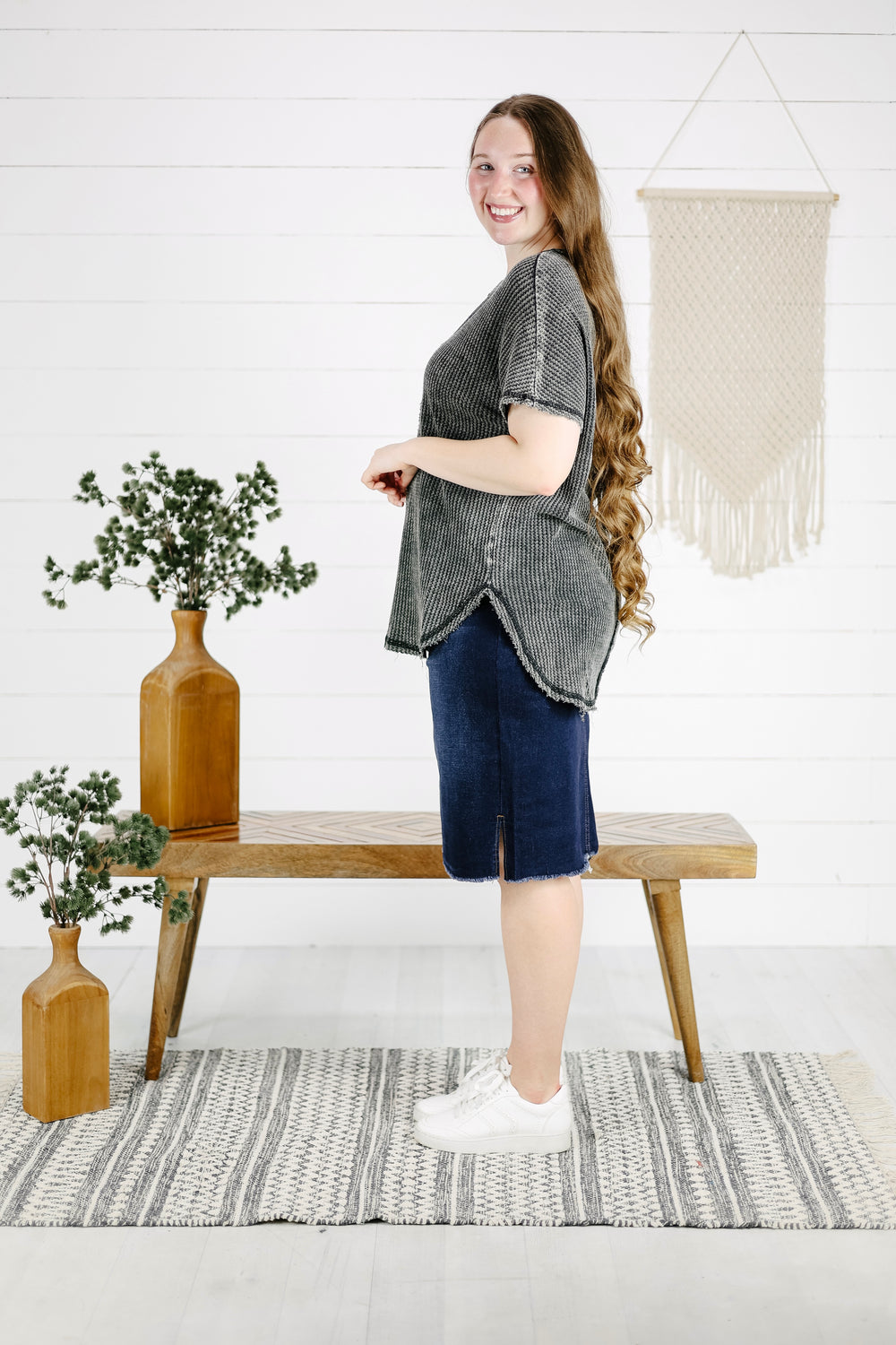 Frankie Waffle Knit Top - Ash Black/Final Sale