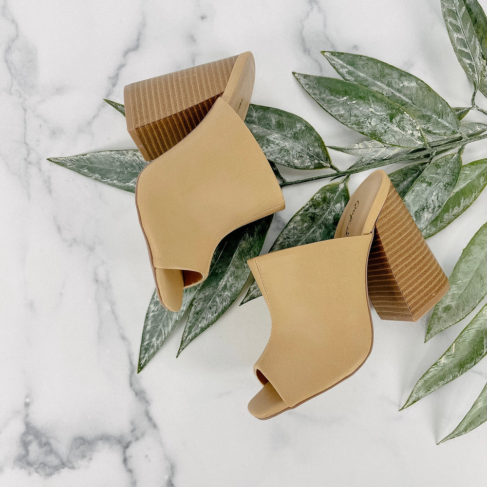 Descriptive Details- Stitch down center of shoe, Peep toe, Block heel