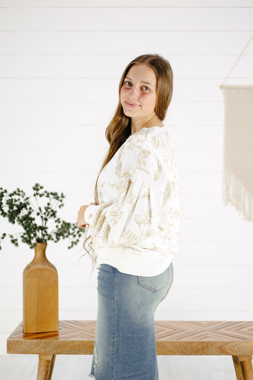 A playful and casual top! Its loose, lightweight fit makes it perfect for fall occasions. With long sleeves for those chillier days, you'll be comfortable and stylish all day long.
