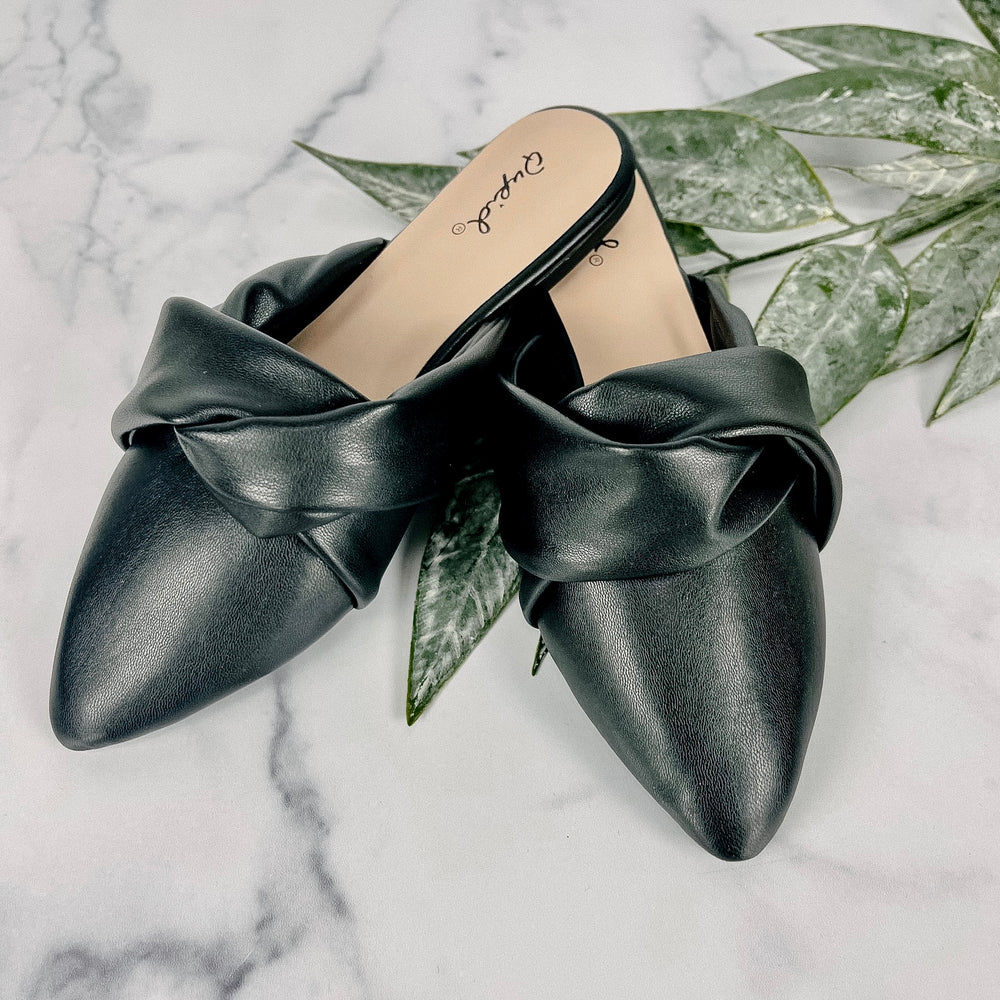 Descriptive Details- Pointed toe, Soft material, Twisted knot detail