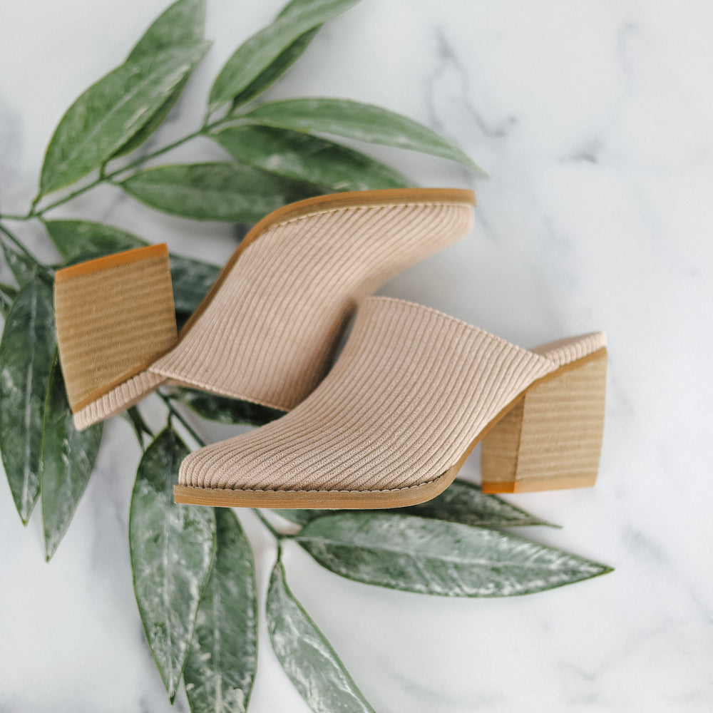 Descriptive Details- Triangle heel, Stripe corduroy texture, Pointed toe