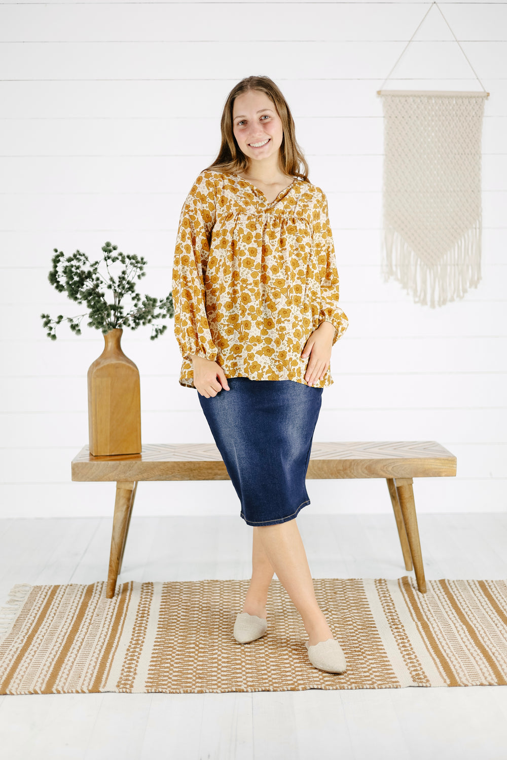 Get ready to bloom in the Mallorie Floral Top. With its beautiful floral pattern, this top is perfect for any occasion. Its loose fit and baby bump friendly design make it comfortable and flattering. Stand out with style and ease in the Mallorie Floral Top.