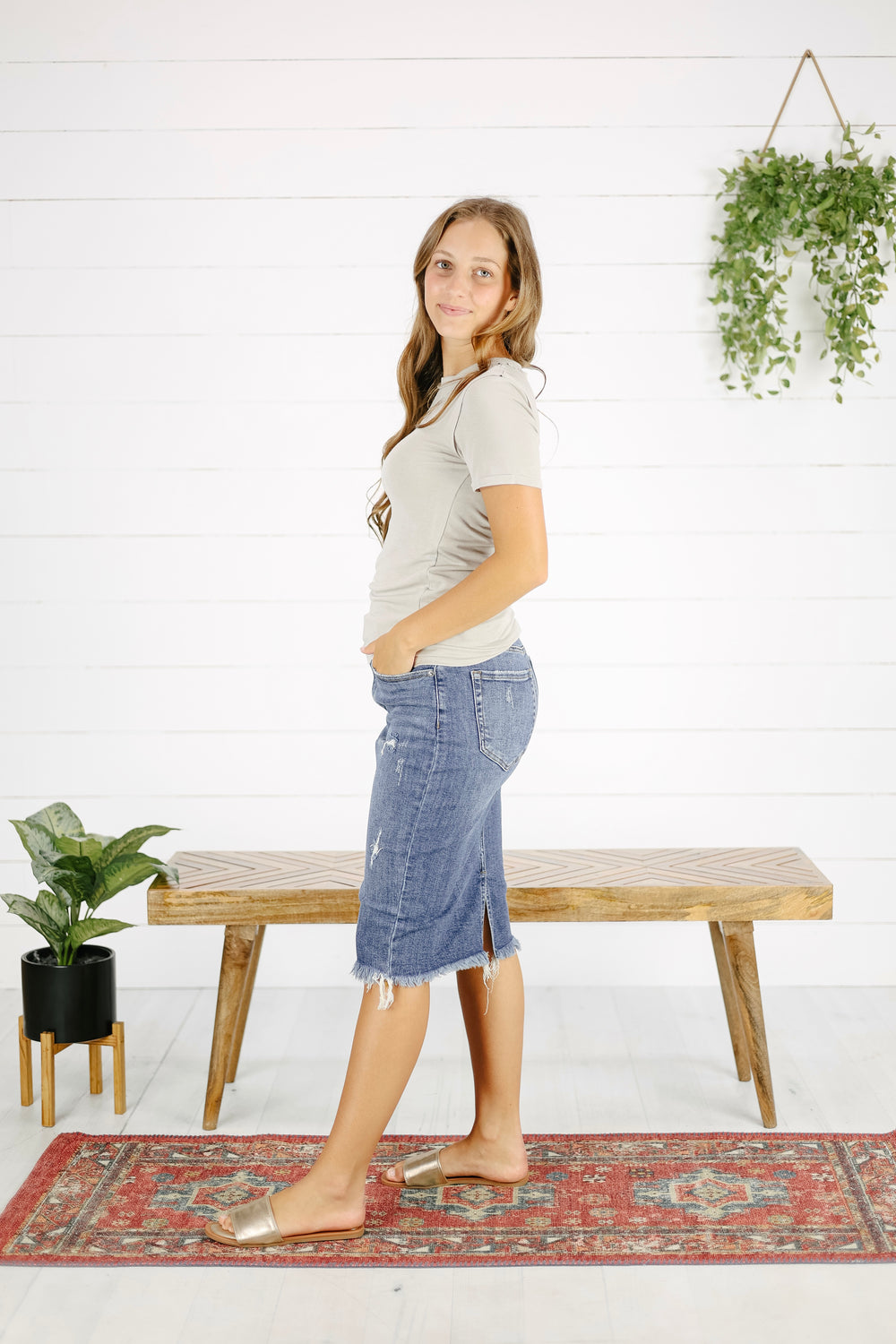 Beat the summer heat in style with our Watson Tee! This soft knit top features a fitted style, raw edge detail, and classic cuff on the sleeve for a unique, effortless look. Look cool without breaking a sweat!