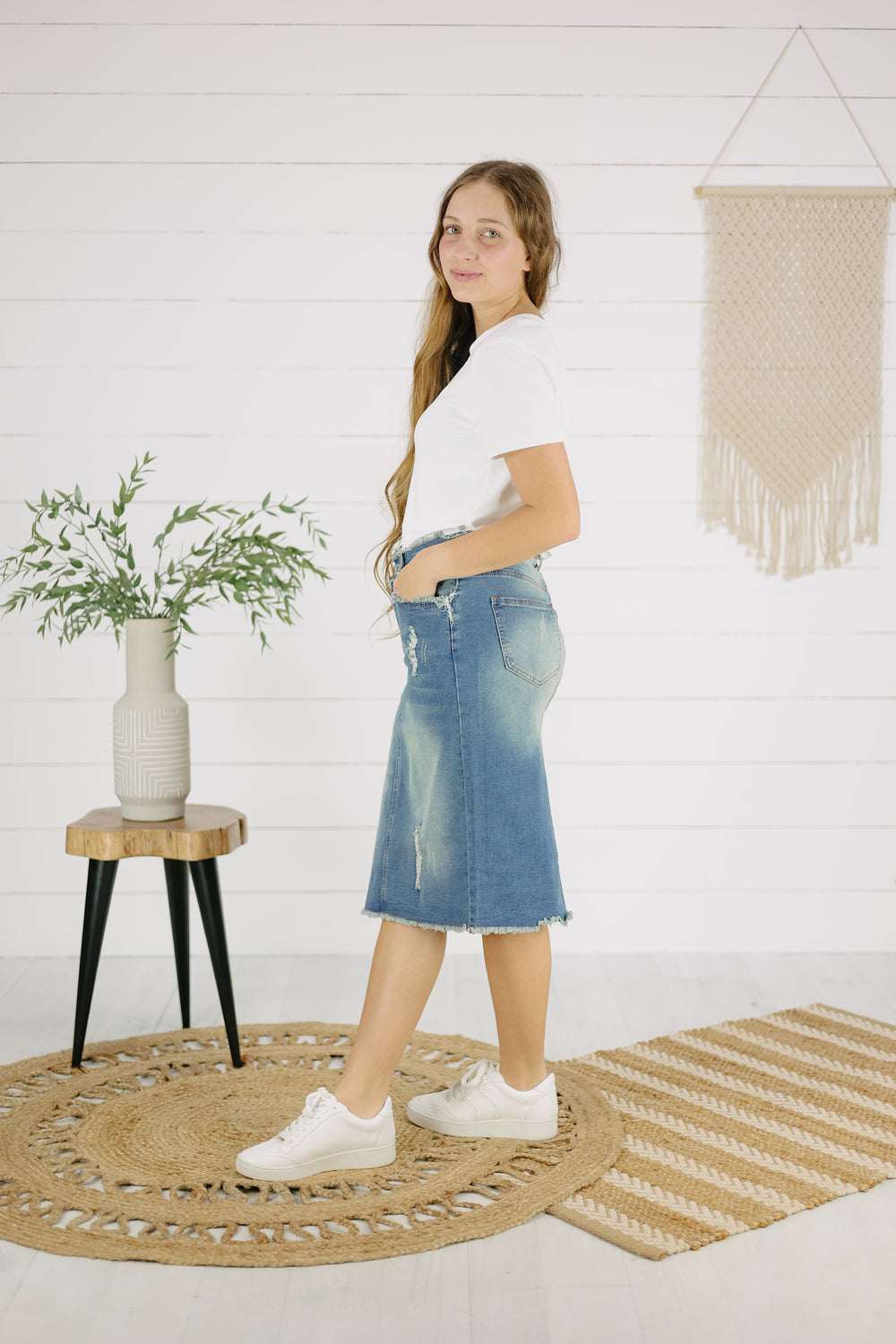 Get ready to rock and roll with the Miles Denim Skirt. Made with stretch denim, this skirt provides a comfortable and flattering fit. The raw edge hem and distressed details add a touch of edginess, while the straight fit and zipper closure make it easy to pull on and go. No split means no fuss. (Perfect for all your adventures!)